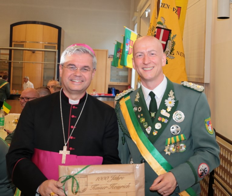 Oberst Markus Cink konnte in diesem Jahr als Ehrengast Erzbischof Dr. Udo Markus Bentz zur Heinrichsfeier, die in diesem Jahr im Zeichen des 1000. Todestages von Kaiser Heinrich II., dem Schutzpatron der Schloß Neuhäuser Pfarrkirche und der Schützenbruderschaft stand, begrüßen.