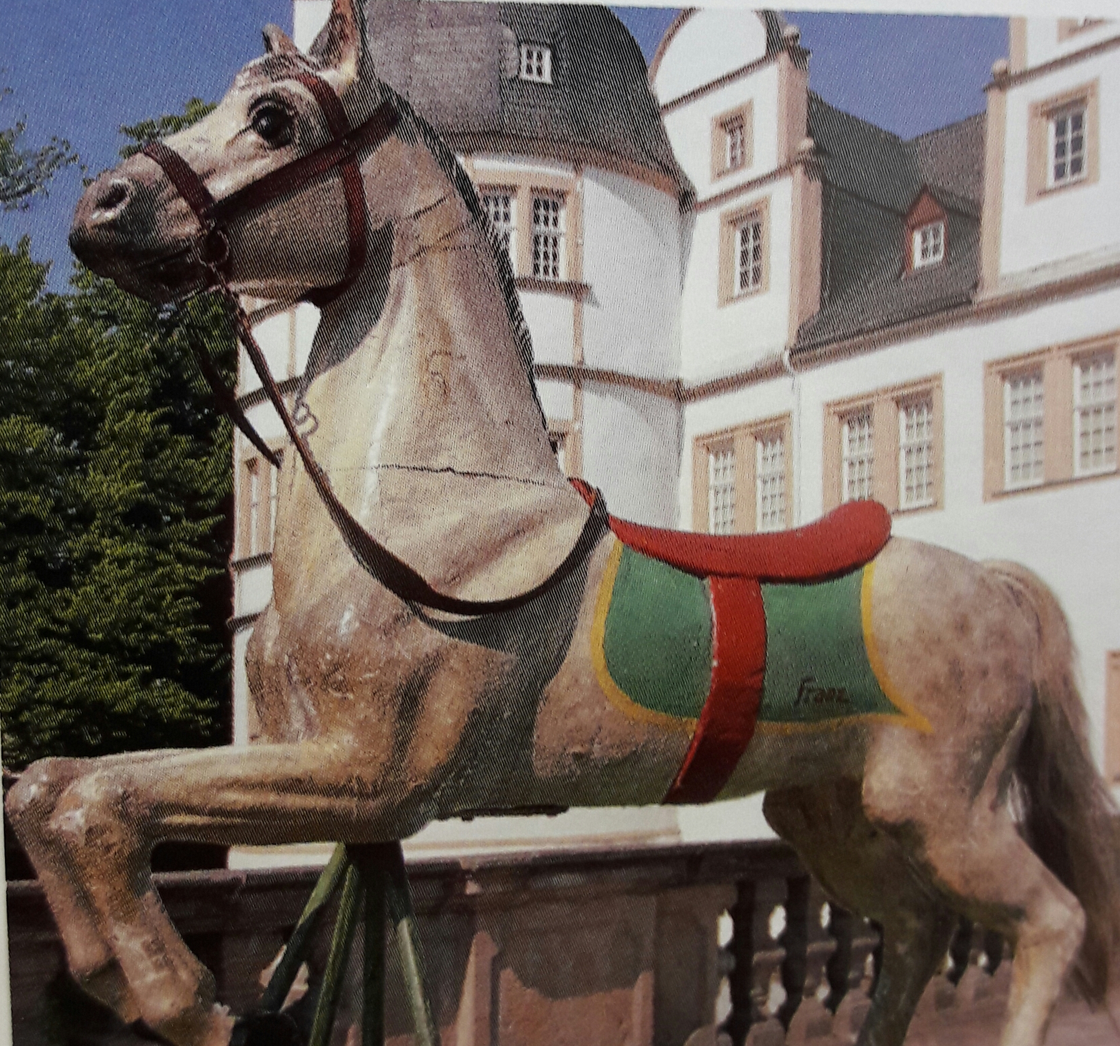 Das 2012 restaurierte und wieder in neuen Glanz versetzte Holzpferd ist einer der Stars am Schützenfest-Montag. "Franz" bringt seit vielen Jahrzehnten die neuen Prinzen und Könige inkl. Gefolge sicher von der Freilichtbühne, wo das Vogelschießen veranstaltet wird, in das Zelt zum "Hochleben lassen" und der Proklamation. Ihm vorweg das Tambourkorps der Bruderschaft. Gezogen wird "Franz" mit seinen Gästen von Schützenbrüdern. Foto: links vor der Restauration, rechts nachher.